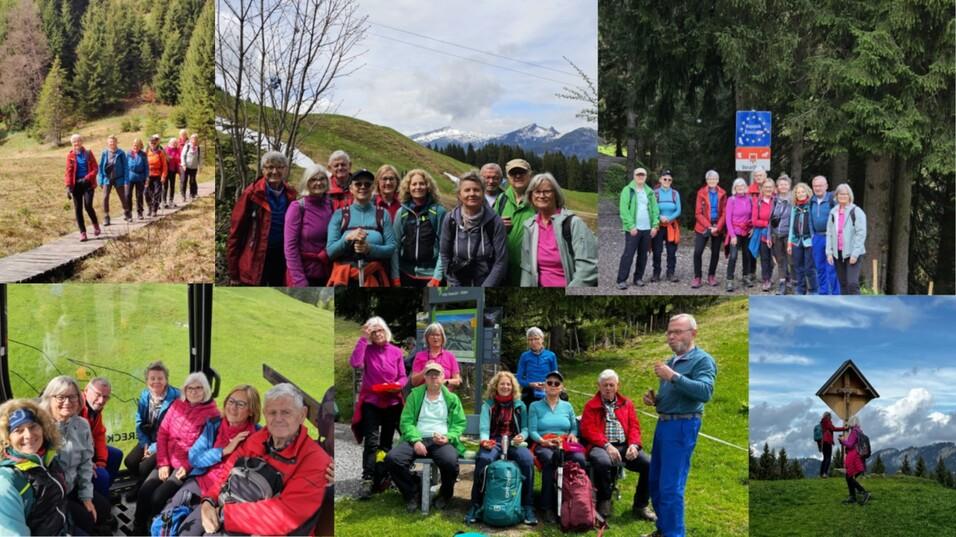 Die Anreise erfolgte per Zug nach Oberstdorf, von dort weiter mit dem Bus zur Söllereckbahn. Nach der Bergfahrt wanderte die Gruppe bei Sonnenschein zunächst zu einem Hochmoor, das über einen Holzsteg begehbar war. Anschließend ging es vorbei an Schneefeldern mit herrlicher Aussicht ins Tannheimer Tal.